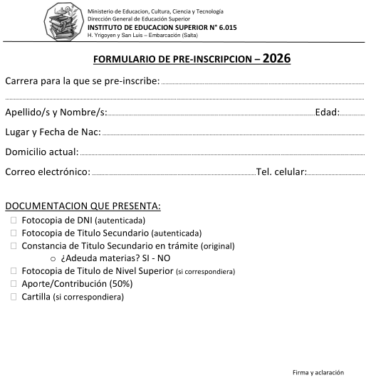 Formulario de pre- inscripciÓn